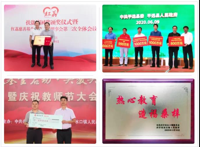 多年來,建藝集團積極履行社會責任,用愛心回報社會,截止目前,共捐助善款6000多萬元,其中,為平遠縣發(fā)展教育基金會捐贈800萬元、在興寧市水口鎮(zhèn)2020年教育發(fā)展基金啟動中認捐1000萬元、為興寧市人民醫(yī)院建設捐助資金1200萬元,此外,在慈善、教育、學校、醫(yī)院等建設及宗教寺廟建設、商會組織、政協(xié)捐款等方面共捐款3700多萬元。未來,建藝集團會繼續(xù)肩負起一個企業(yè)應有的責任,為社會做出力所能及的貢獻。