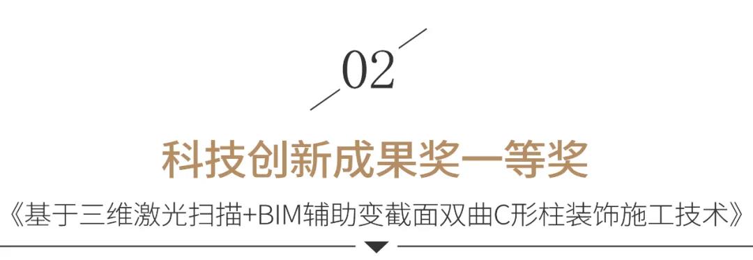 本次公布的名單中,寶鷹集團的《廣西金融廣場酒店二次裝飾設(shè)計》獲設(shè)計創(chuàng)新獎一等獎,《基于三維激光掃描+BIM輔助變截面雙曲C形柱裝飾施工技術(shù)》獲科技創(chuàng)新成果獎一等獎,《大空間采光頂桁架結(jié)構(gòu)鋁板飾面施工技術(shù)》獲科技創(chuàng)新成果獎二等獎,《橫琴星藝文創(chuàng)天地項目一期地塊1精裝修工程-非酒店標》、《中國海南?;◢u國際會議中心室內(nèi)精裝修工程》獲科技創(chuàng)新工程獎二等獎。