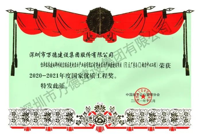 日前,萬德建設(shè)集團(tuán)參建的鄭州航空港區(qū)光電顯示產(chǎn)業(yè)園建設(shè)項(xiàng)目(F1主廠房與C1動(dòng)力中心工程)榮獲“2020-2021年度國家優(yōu)質(zhì)工程獎(jiǎng)”。