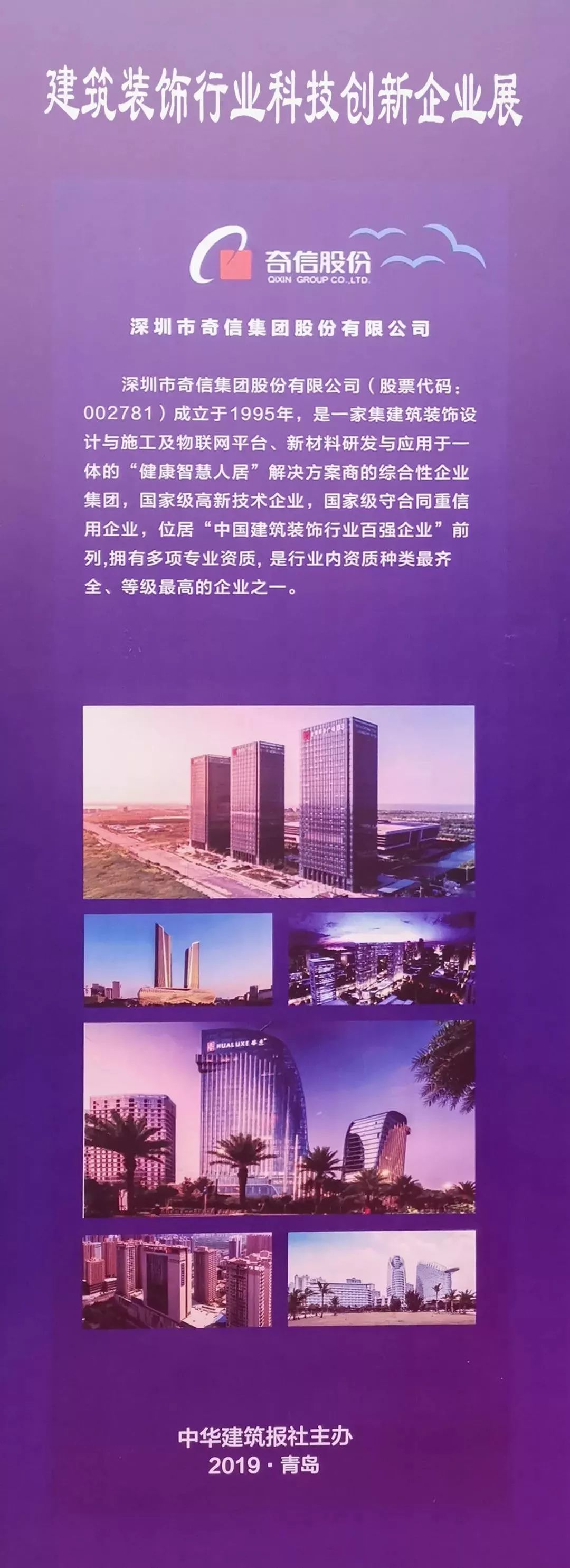 2019年11月28日-29日,第四屆全國建筑裝飾行業科技創新大會暨大國裝飾70年輝煌成就展在青島國際會議中心隆重召開。會上,深圳市奇信建設集團股份有限公司(以下稱“奇信股份”)被授予“科技創新企業”稱號,其承建的項目北京雁棲湖國際會展中心獲得“70周年百項經典工程”稱號,奇信股份董事長葉洪孝榮獲“新生代領軍人物“稱號。