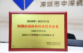 近日,中深裝集團收到深圳市風景園林協會頒發的“2020-2021年度深圳市園林和林業優秀企業”榮譽證書和牌匾。