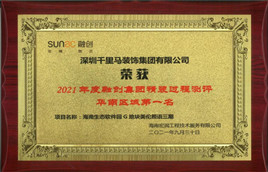千里馬裝飾集團:融創(chuàng)美倫熙語項目榮獲“2021年度融創(chuàng)集團精裝過程測評華南區(qū)域第一名”