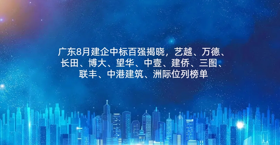 廣東8月建企中標百強,藝越、萬德、長田、博大、望華、中壹、建僑、三圖、聯豐、中港建筑、洲際位列榜單