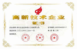 近日,深圳文業裝飾設計工程有限公司(以下稱“文業裝飾”)順利通過“國家高新技術企業”認定,正式邁入國家高新技術企業行列。