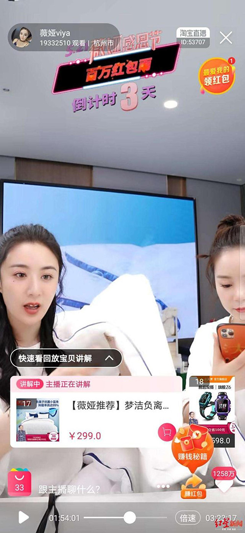 ??根據夢潔股份披露的公告,公司與薇婭所在的謙尋(杭州)文化傳媒有限公司(下稱謙尋文化)旗下主播“薇婭”共合作7次,其中2019年合作直播銷售公司產品3次,累計銷售金額469萬元。2020年,薇婭直播銷售公司產品共4次,5月18日的銷售成果因結算周期原因暫未結算,其他3次累計銷售金額為812.12萬,占公司2019年營收的0.31%。同時,夢潔股份支付的費用為213萬,實際收入僅為600萬元不到。