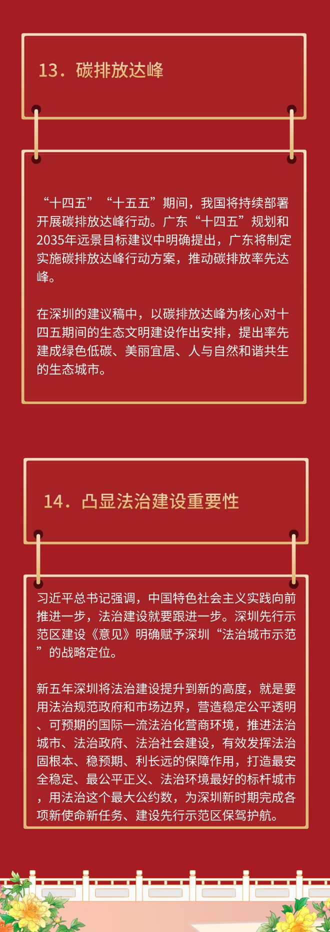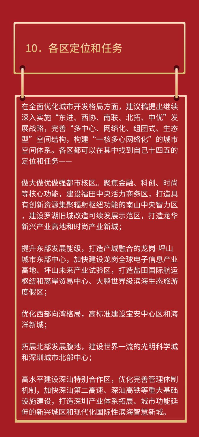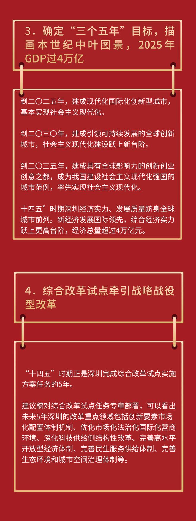近日,《中共深圳市委關(guān)于制定深圳市國民經(jīng)濟和社會發(fā)展第十四個五年規(guī)劃和二〇三五年遠景目標(biāo)的建議》(以下簡稱“建議稿”)正式出爐,建議稿在結(jié)構(gòu)上分3大板塊,共15個部分、73條,約2.7萬字,詳細闡述了深圳今后5年、10年乃至15年的經(jīng)濟社會發(fā)展,信息量極大。