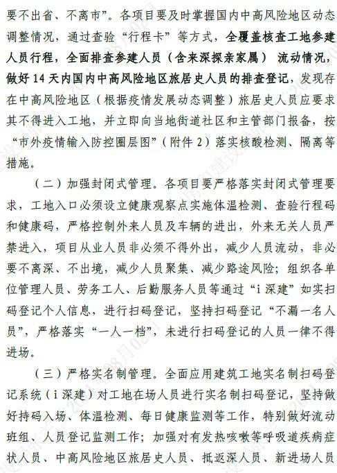 深圳市建設工地疫情防控工作專班發布了關于進一步加強建設工地疫情防控工作的通知。