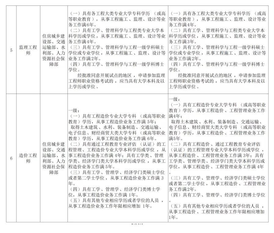 近日,中華人民共和國人力資源和社會保障部正式官宣發布《關于部分準入類職業資格考試工作年限調整方案公示》,明確了一級建造師、監理工程師、中級注冊安全工程師、一級造價工程師、二級造價工程師等14項準入類職業資格考試的降低調整方案!