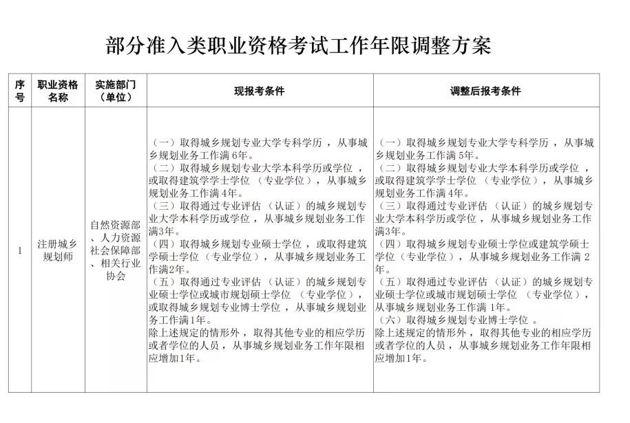 附件:部分準入類職業資格考試工作年限調整方案
