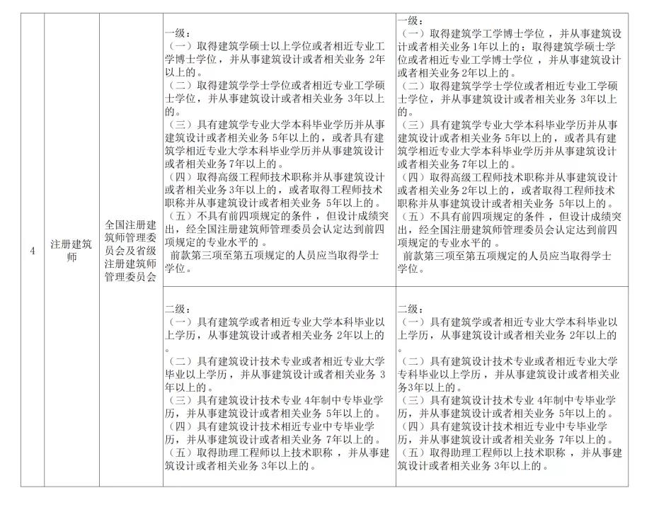 (一)取得建筑學工學博士學位,并從事建筑設計或者相關業務1年以上的;取得建筑學碩士學位或者相近專業工學博士學位,并從事建筑設計或者相關業務2年以上的。