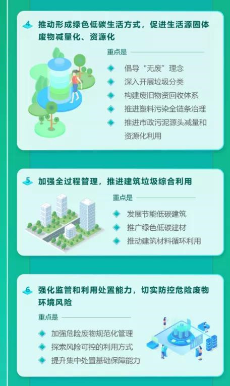 《方案》還圍繞固體廢物污染防治的重點領域和關鍵環(huán)節(jié),主要明確了多個主要任務。
