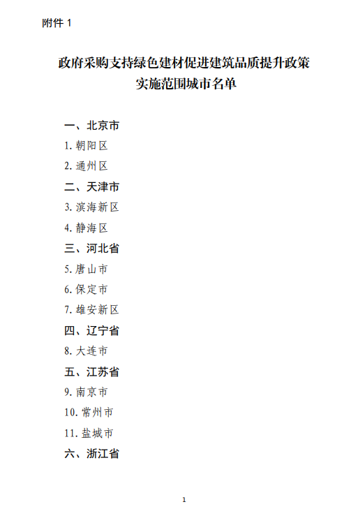 政府采購(gòu)支持綠色建材促進(jìn)建筑品質(zhì)提升政策實(shí)施范圍城市名單