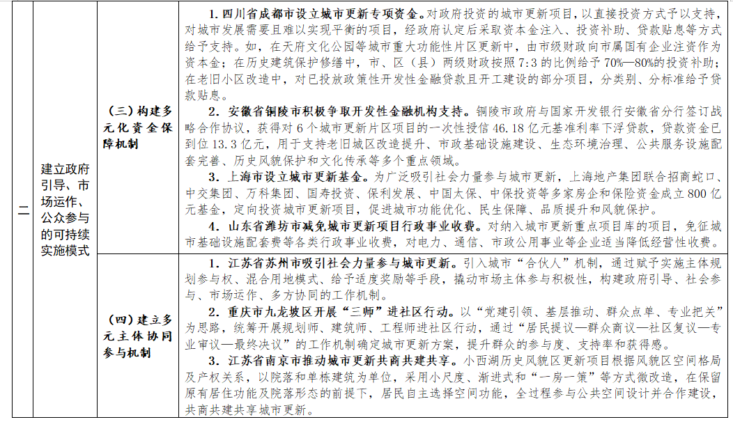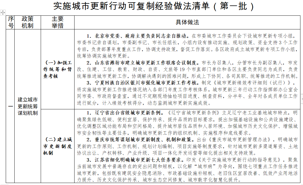 近日,住房和城鄉(xiāng)建設部總結城市更新試點城市和各地經驗做法,印發(fā)《實施城市更新行動可復制經驗做法清單(第一批)》。