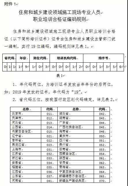 1.住房和城鄉(xiāng)建設(shè)領(lǐng)域施工現(xiàn)場專業(yè)人員職業(yè)培訓(xùn)合格證編碼規(guī)則