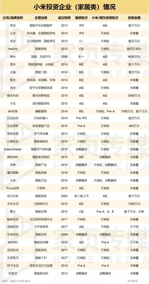 ??比起2018年開始在家居賽道大手筆投資的阿里,小米的入場低調(diào)很多。盡管都是以投資為手段,但小米一直選的是小額度、多標(biāo)的的方式。