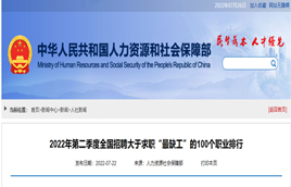 近日,人社部發(fā)布2022年第二季度全國招聘大于求職“最缺工”的100個職業(yè)排行。
