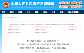 近日,財政部辦公廳、應急部辦公廳發布了關于向社會公開征求《企業安全生產費用提取和使用管理辦法(征求意見稿)》意見的通告。