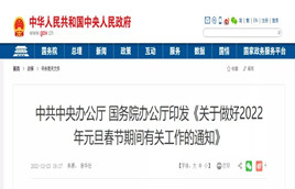 近日,中共中央辦公廳、國務院辦公廳印發《關于做好2022年元旦春節期間有關工作的通知》。