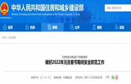 近日,住房和城鄉建設部就做好2022年元旦春節期間安全防范工作下發通知。通知強調,2022年是我國踏上全面建設社會主義現代化國家、向第二個百年奮斗目標進軍新征程的重要一年,年初將舉辦北京冬奧會、冬殘奧會,做好住房和城鄉建設領域元旦春節期間安全防范工作十分重要。