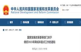近日,國家發展改革委等部門發布關于做好2023年降成本重點工作的通知。